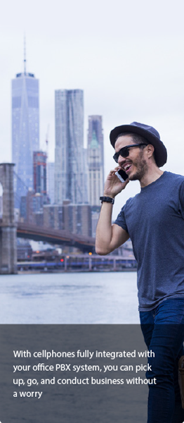 PBX & CELLPHONE SERVICES FEATURESRoute active calls from your phone to the office and vice versa—with an easy 4-digit extension—or to virtually anywhere in the world.